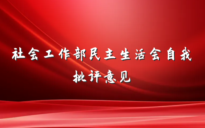 《社会工作部民主生活会自我批评意见》所在栏目:优质范文 > 内容摘要:还在为写社会工作部民主生活会自我批评意见而苦恼吗?下文向大家推荐分享几篇《社会工作部民主生活会自我批评意见》开头怎么写,供大家借鉴,一起看看,您可以深入搜索更多信息《社会工作部民主生活会自我批评意见》相关的范例。社会工作部民主生活会自我批评意见相关关键词:自我批评 社会工作 民主生活会 意见,开头,欢迎阅读参考!脱离文章烦恼。。